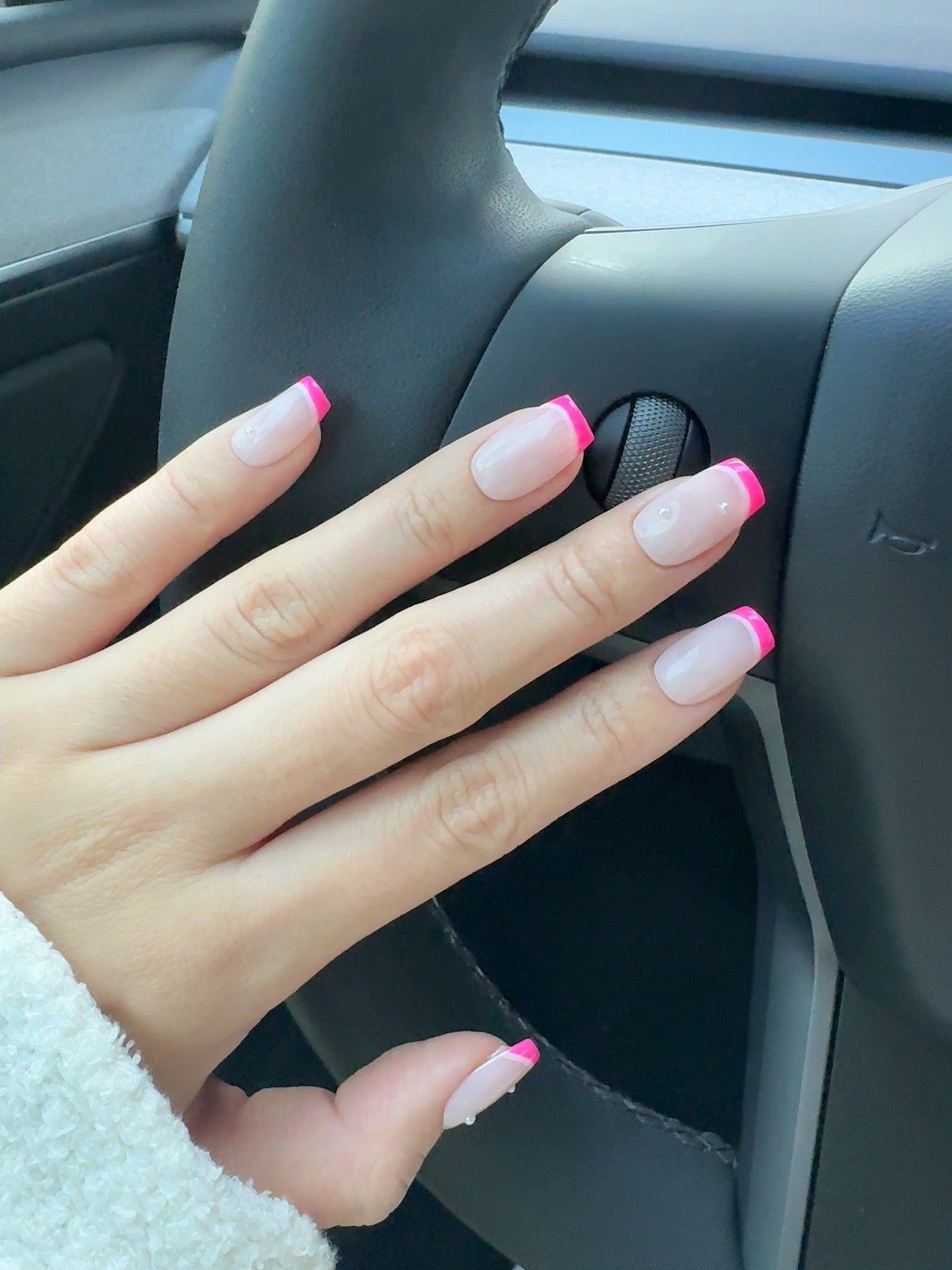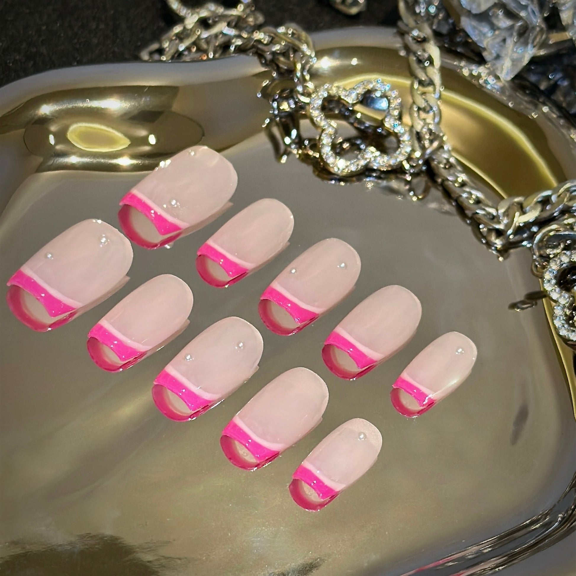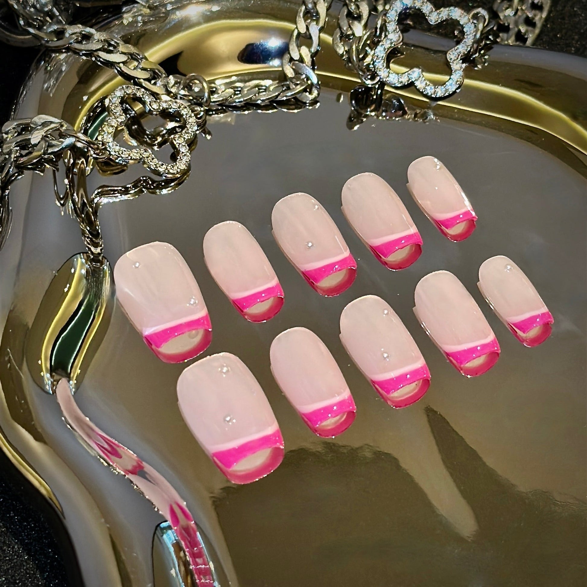 Elevate your nail game with these chic Neon French Tips. Featuring a sleek nude base paired with vibrant pink tips. Easy to apply and reusable, they’re designed for all-day comfort and style. It is ideal for parties, casual outings, or adding a pop of color to your everyday look.